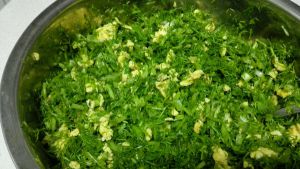和面的时候加点盐,这样和出的面比较有劲,和好后,放置醒一会,这个时候正好可以准备拌馅儿!倒不出手,没有拍照哦~
