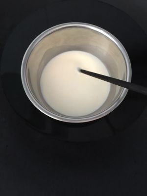 牛奶加糖, 加淡奶油,搅拌到糖融化……