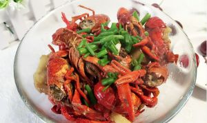 蒜子姜大葱切碎备用 做法 烧油锅 放姜 蒜 香叶 爆香 ,下火锅底料产开 下开水或者啤酒 猛火煮开 下盐 味精 鸡粉 糖 蚝油 生抽 后 倒入小龙虾慢火煮5到10分钟入味 再放 需要配菜的这个时候可以放了 因为我这里有三斤虾 所以没放配菜 下去煮几分钟 起锅装盘 把葱花 香菜段 蒜蓉 花椒 洒在面上 烧油 150°C左右倒入 即可