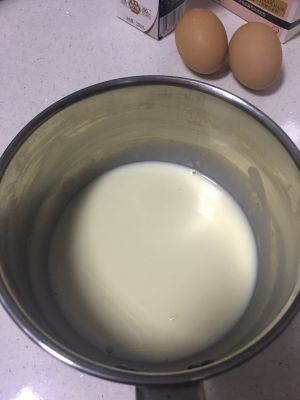 牛奶里放入砂糖加热融化,放凉备用