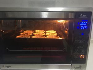 烤箱调至烘焙档,预热到160度(Sammy烤箱的温度偏高,所以设置160度就差不多了),然后把烤盘放入中层,时间设置15分钟,注意观察,待表面上色即可出炉啦~