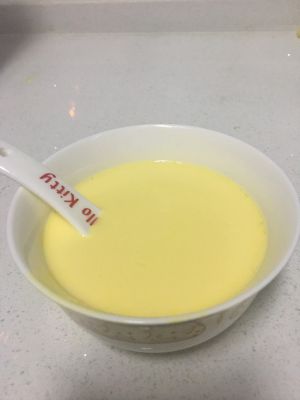 然后用勺子搅拌均匀,这样蛋挞液就完成了~
