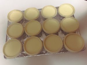 混合搅拌后将蛋挞液倒入蛋挞皮中