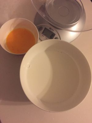 牛奶240g【约袋装250ml牛奶的量】微波三十秒温热 鸡蛋取蛋黄打匀后倒入牛奶中