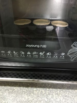 烤箱提前预热,200度预热10分钟,预热好,把蛋挞放烤盘上,一定要注意隔热,烤盘放中间,然后温度200度,烤25分钟,等待出锅