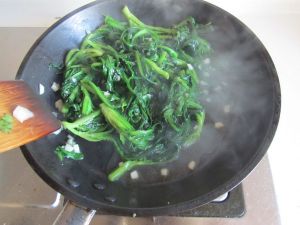 大火爆炒,然后放少许盐和酱油,最后撒上蒜末就可以出锅了。
