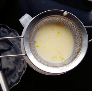过滤好的蛋挞液很细腻。