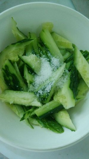 黄瓜切块,加入盐