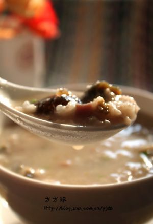 做这个粥就很简单了,取一个砂锅,添水把米先加进去,大火烧开,然后把肉和一半的皮蛋扔进去小火熬,熬的过程中要不时掀开盖子搅和搅和,防止粥粘锅底糊锅,熬了大概四十分钟,看到米开花以后把另一半的皮蛋也放进去,继续熬10分钟,最后撒上姜丝盛出即可!没有砂锅用普通的锅也可以,比如电饭锅。粥虽简单易操作但是味道可是绝佳哦!