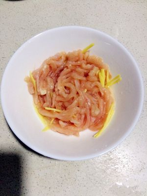 鸡胸肉加料酒 油 盐 十三香 姜丝 腌制
