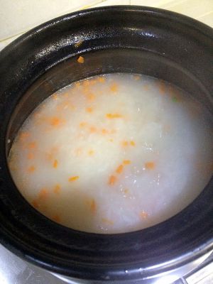 待米汤变粘稠加入胡萝卜 搅拌后继续小火加热10钟