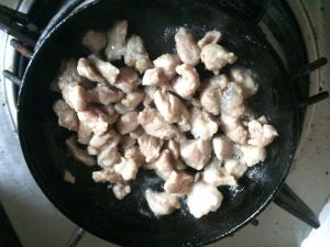 将肉丝倒入翻炒,发白后关火,肉丝就放锅里不用盛出来