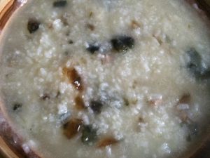 小火煲粥两小时左右再加入姜丝。盐。胡椒粉调味即可