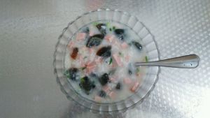 大米淘干净,我指的一罐子半大米,那个罐子是家里舀米的那玩意,大米洗净后加水,像煮稀饭那样,煮到大米膨胀成大米粒