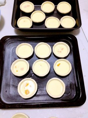 盛入蛋挞皮里(蛋挞皮是买现成的)