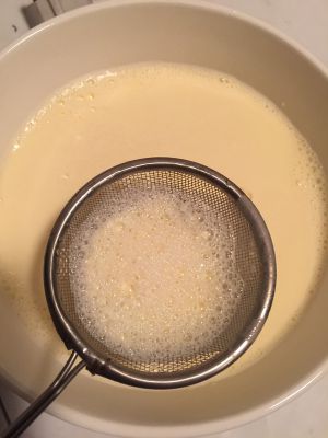 鸡蛋打散打均匀哦➕进凉的差不多的奶里搅拌好