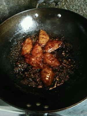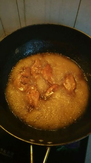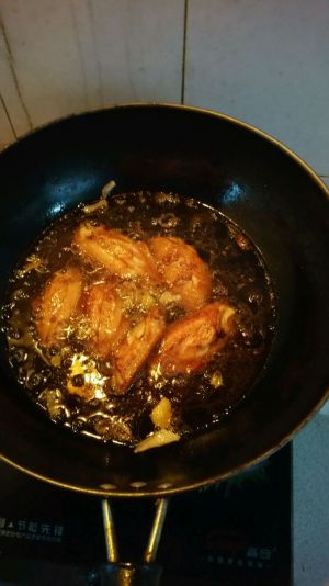 放入锅内炸,炸一会儿放入蒜末,姜末,倒入可乐,直至收汁。