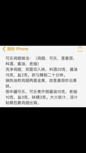 可口可乐倒半瓶盖过翅中(可乐里面加点盐)然后盖锅盖焖煮会'待水差不多干的时候努力翻炒下'加点鸡精就可入盘(因鸡翅腌制加了盐'可乐里面也有盐'所以焖好的鸡翅盐味足了'不过根据个人口味自行添加)