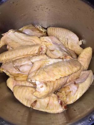 翅中洗净加盐炸鸡粉腌制'中间划小刀或用牙签插洞'方便入味'然后锅中烧油把翅中炸黄备用
