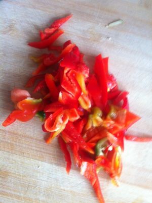 放油,加入葱姜蒜炒香,然后放入洋葱加入适量盐(能沙沙水气)翻炒2分钟,加入红椒继续翻炒3分钟左右,也可多翻炒一下(炒老了才好吃)。