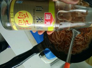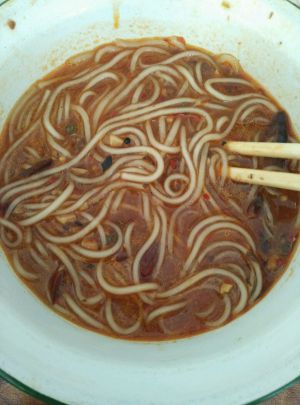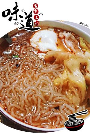 粉丝煮软后,捞到调好的酱汁里,搅拌;之后浇上汤;把菜叶放到最上面就好了 ps.当时妈咪想吃荷包蛋我就打了一个进去