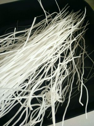 红薯粉丝用冷水泡软后,锅中水烧开,放入红薯粉丝,煮一分钟左右捞出,