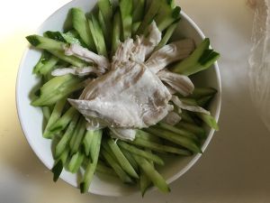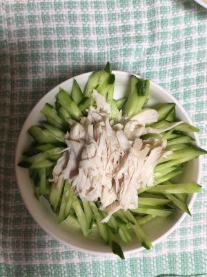 鸡胸肉放锅里,加水淹过肉,加热,煮五分钟,在开小火焖五分钟,不要开锅盖,关火。等15分钟,凉了后取出鸡肉,用手顺着撕开