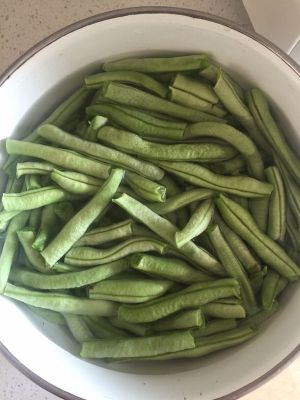洗净的豆角放入锅中,焯十分钟至这种新鲜绿色,捞出放入盆中待用