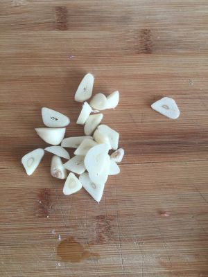 炒锅下油烧热,爆香蒜和干红辣椒。
