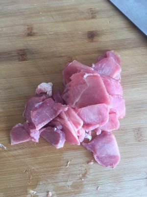 肉剁成末,干红辣椒洗净灰尘,擦干水分剪成小段,蒜剁成茸备好。