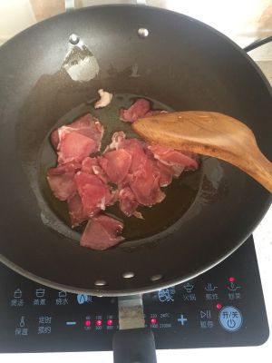 放入肉末,用铲子快速将肉末划散,淋入料酒,把水份翻炒煸干。