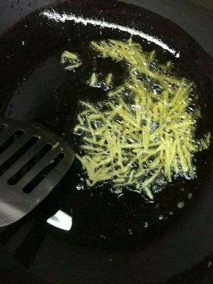 锅下油,姜蒜爆香,下肉丝翻炒至八分熟,起锅备用。