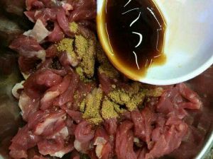 先腌制牛肉丝,加味极鲜