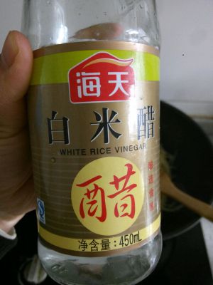 翻炒一分钟后,倒入白醋,我喜欢吃酸就多倒了些,放入半勺盐,
