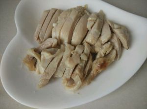 买回来的鸡要飞一次水,放姜,放蒜,放料酒,煮开,把鸡倒入,煮八分钟出锅立刻放进冰水,这样鸡更有口感,(我用的是鸡翅和小翅)