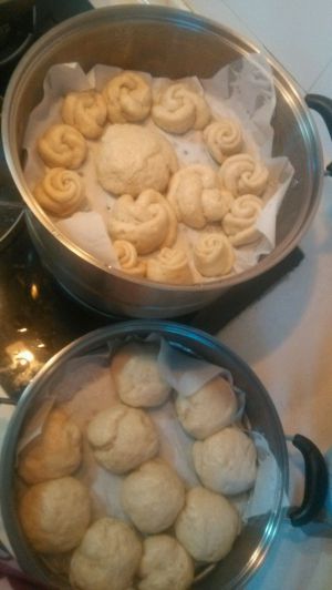 让馒头们在蒸锅里安静的呆上15~20分钟。然后开火蒸,上汽后15~20分钟,看他们一个个都胖了一大圈就好了。