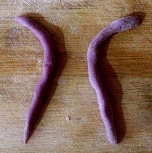 搓两根面团当乌龟的脚