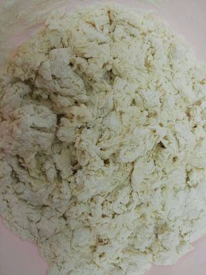 将粉类揉搓均匀团成一个球…在揉搓的过程中如果太干可以再加点鸡蛋液,因为每个鸡蛋大小不一…鸡蛋液量也不一…