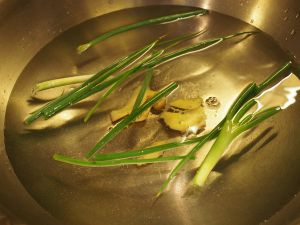 蒸蟹的时候拿一些姜切丝放入小碗里,倒入蟹醋,蟹蒸好之后解开绳子装盘即可。