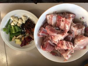 准备食材,排骨,八角花椒辣椒,葱姜蒜