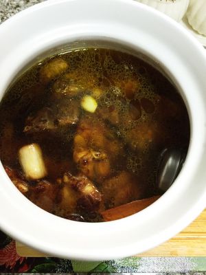 倒入红烧汁,加水盖过排骨。大火煮开后转小火。
