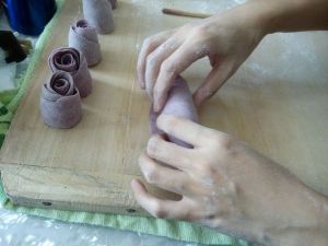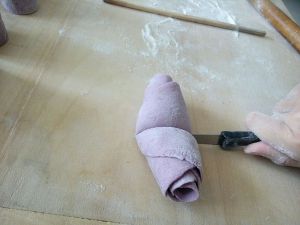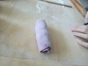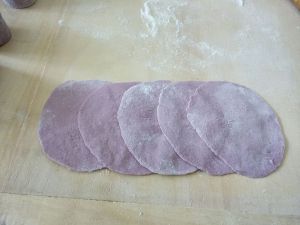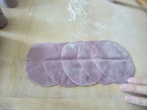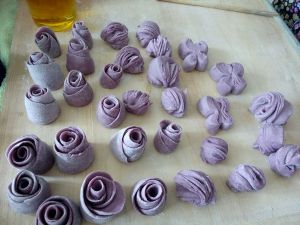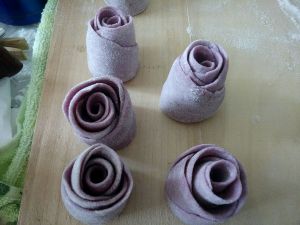 终于有照片了,嘿嘿~将剂子擀好摞起来,一朵花我用了五个剂子。