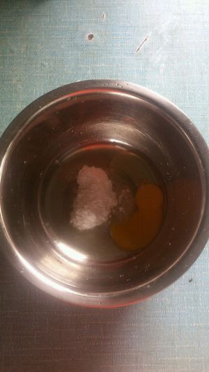将玉米油倒入盆中,搅拌均匀!