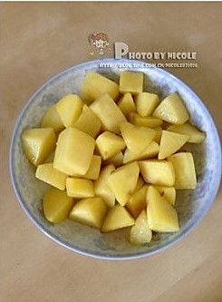 小火煎至土豆块微微泛黄且有些透明,盛出待用;