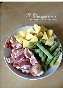 土豆切开 豆角切段备用