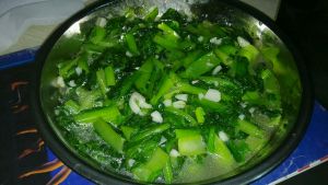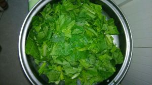 切的包菜叶放入锅中煮一下,直至变软,过一下冷水