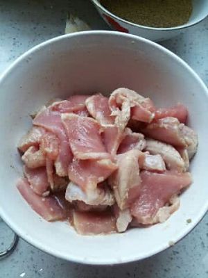 里脊肉!切快!用姜!料酒!盐!腌制!待用