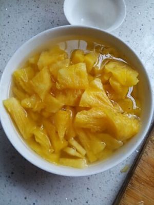 准备食材,将猪里脊切片(3毫米左右厚度),菠萝切成小块。