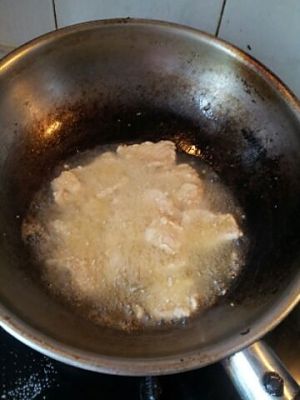 肉片抓成团,滚上干面粉(面粉淀粉比例2:1)。