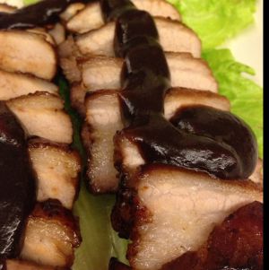 出炉了!整个房子都是香味,放凉了切片,把多余的烧烤汁勾芡用来蘸酱吃,美味极了!